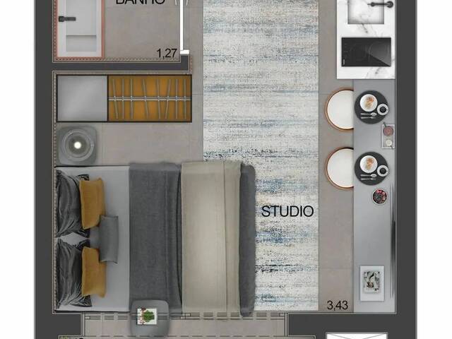 Studio novo a venda no Brooklin com 27 mt, 1 suite, lavanderia coletiva, lazer completo, esquina com Av. Santo Amaro e Rua Vieira de Morais.